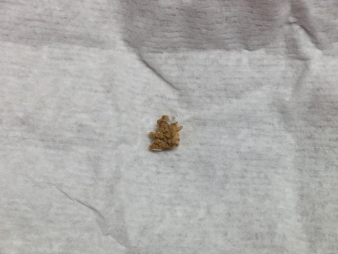 That up there? Is a kidney stone. It’s about the size of a dime, and has formed itself to be covered in spikes.